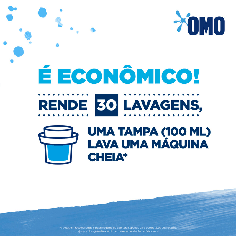 • O Sabão Líquido OMO Puro Cuidado é imbatível nas manchas da introdução alimentar*, cuidando das peles mais delicadas e do meio ambiente • A nova fórmula hipoalergênica e extra suave com pH balanceado, para peles delicadas**, é perfeita para a lavagem das roupinhas do bebê • Lava roupas que combate manchas difíceis dos tecidos, imbatível até nas manchas da introdução alimentar* • Este Sabão Líquido OMO Puro Cuidado com toque de aveia*** e sem corantes é aprovado por pediatras e dermatologistas • Sabão Líquido OMO de 3 L é poderoso na limpeza e rende 30 lavagens, apenas uma tampa lava uma máquina cheia**** • Detergente líquido com ativos biodegradáveis e garrafa feita com plástico reciclado, sOMOs diferentes#, somos transformação positiva para o meio ambiente O Sabão Líquido OMO Puro Cuidado, com toque de aveia*** foi especialmente formulado para cuidar das roupas sem agredir as peles mais delicadas. A nova fórmula hipoalergênica e extra suave com pH balanceado é recomendada para peles delicadas**, perfeita para as roupinhas do bebê. Este detergente líquido OMO Puro Cuidado, sem corantes, é aprovado por pediatras e dermatologistas. Além de respeitar as peles mais delicadas, este lava roupas combate as manchas mais difíceis, imbatível até nas manchas da introdução alimentar* e cuida do meio ambiente. O sabão líquido OMO é poderoso, 3 L rende 30 lavagens. Sua fórmula contém ativos biodegradáveis, além de economizar água, uma vez que precisa de apenas 1 enxágue. Apenas uma tampa lava uma máquina cheia****. Sua garrafa é feita com plástico de outras garrafas e é 100% reciclável. Faça o descarte consciente. Quando você escolhe OMO, você escolhe um mundo melhor. Juntos, sOMOs a transformação positiva para o meio ambiente. Seu uso é recomendado por Brastemp e Consul. Saiba como um futuro limpo é possível em: https://www.futurolimpo.com.br/home.html *Comparado com detergentes líquidos do mesmo fabricante. Manchas como mamão, suco de tangerina e papinha de cenoura. Essa garrafa possui no mínimo 35% de PCR. **Desenvolvido para lavar roupas de pessoas com pele delicada. ***Com extrato de aveia na fragrância. ****A dosagem recomendada é para máquina de abertura superior, para outros tipos de máquina, ajuste a dosagem de acordo com a recomendação do fabricante.